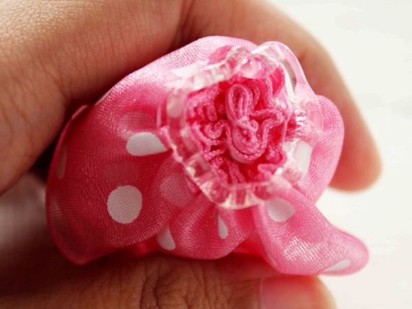 - Tarik benang dan mulailah mengencangkan pita, membentuk bunga mawar.